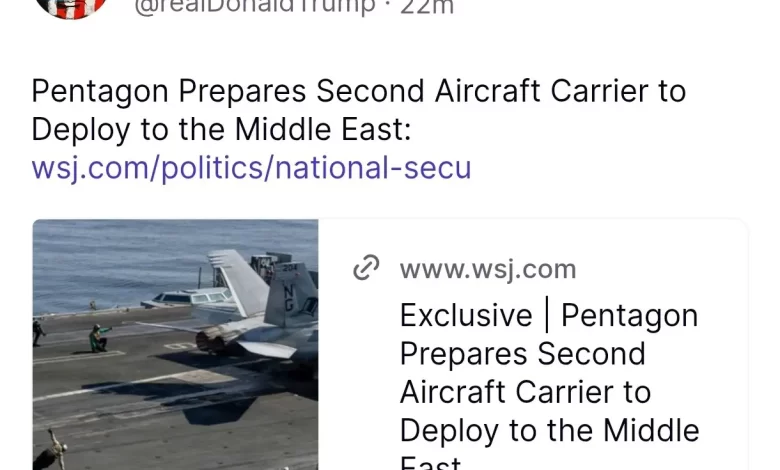 دونالد ترامپ، رئیسجمهور ایالات متحده، با انتشار پستی در پلتفرم تروث سوشال خود، خبر آمادهسازی و اعزام احتمالی دومین ناو هواپیمابر به غرب آسیا را تایید کرد. این تاییدیه، گام بعدی در فرآیند احتمالی افزایش حضور نظامی آمریکا در منطقه را نشان میدهد.
