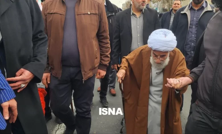 آیتالله جنتی ۹۸ ساله در راهپیمایی ۲۲ بهمن تهران حاضر شد