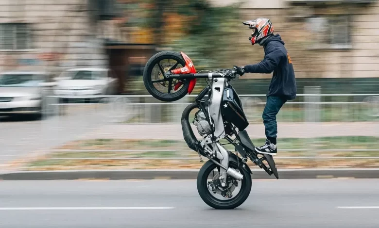 - موضوع ویدیو تکچرخ زدن یک موتورسوار است