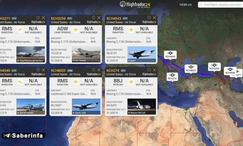 • گزارش حرکت سنگین هواپیماهای ترابری آمریکا در شب گذشته