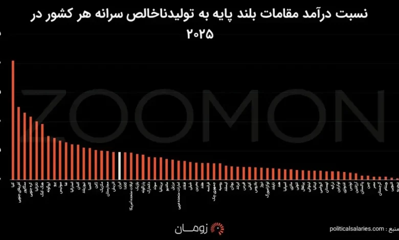 - ایران از نظر نسبت درآمد رهبر به تولید سرانه، در رتبه ۲۸ از میان ۹۸ کشور جهان قرار دارد.