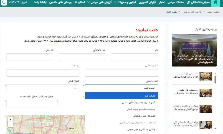 • این سامانه در سایت دادستانی کل کشور به آدرس dadsetani.ir فعال شده است.