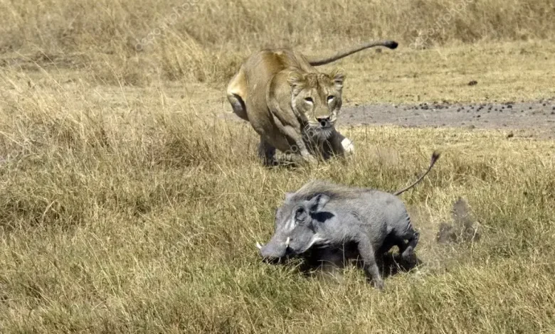 شیر ماده چگونه با کمین حسابشده گراز وحشی را شکار کرد؟