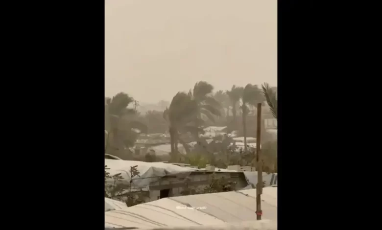 طوفان شدید همراه با گرد و غبار بخشهایی از نوار غزه را دربر گرفت. این شرایط جوی خساراتی به چادرهای محل اسکان آوارگان فلسطینی وارد کرده است.