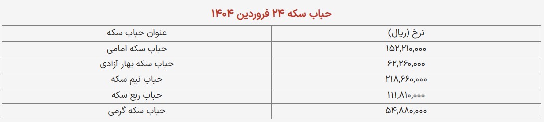 حباب سکه ۲۴ فروردین ۱۴۰۴