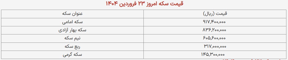 قیمت سکه امروز ۲۴ فروردین ۱۴۰۴