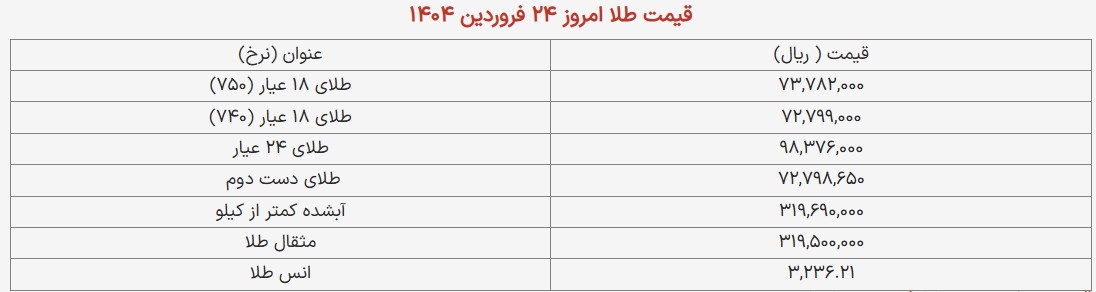 قیمت طلا و سکه امروز ۲۴ فروردین ۱۴۰۴/ ریزش قیمت طلا ادامه دارد+ جدول