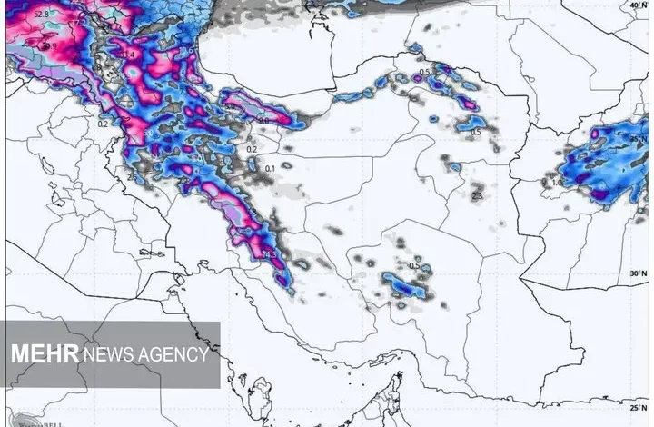 وی افزود: امروز (یکشنبه، ۱۹ بهمن) فعالیت سامانه بارشی در اغلب مناطق کشور ادامه دارد و احتمال ریزش تگرگ در برخی نقاط استانهای حاشیه زاگرس مرکزی و جنوبی وجود دارد. روز دوشنبه (۲۰ بهمن) در شمال غرب، غرب، ارتفاعات البرز، استانهای ساحلی خزر، شمال شرق و شرق کشور بارش پیشبینی میشود. این شرایط روز سهشنبه (۲۱ بهمن) در شمال غرب، استانهای ساحلی خزر، ارتفاعات البرز مرکزی و شمال شرق ادامه خواهد یافت و در روز چهارشنبه نیز بارشها در شمال غرب و ارتفاعات البرز مرکزی تداوم دارد.