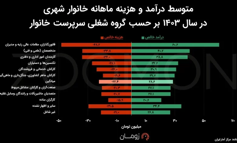 در اقتصاد تورمی، مقایسه حقوقها تنها با عدد اسمی معنا ندارد و نسبت آن با سطح درآمد جامعه اهمیت مییابد. بر اساس گزارشی از «وبسایت زومان» که دادههای مرکز آمار ایران را بررسی کرده، میانگین درآمد ماهانه گروه «مقامات عالیرتبه و مدیران» در سال گذشته حدود ۶۰.۶ میلیون تومان بوده است. این در حالی است که متوسط درآمد کارگران ساده حدود ۲۰.۶ میلیون تومان برآورد شده؛ فاصلهای تقریباً سهبرابری که خود بیانگر تفاوت جدی در سطح رفاه است. همین گزارش اشاره میکند این گروه شغلی حتی نسبت به متخصصان علمی و فنی نیز حدود ۵۰ درصد درآمد بیشتری داشتهاند.