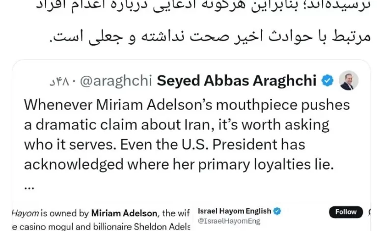 - عباس عراقچی، وزیر امور خارجه، این ادعا را وابسته به منافع خاص دانست.
