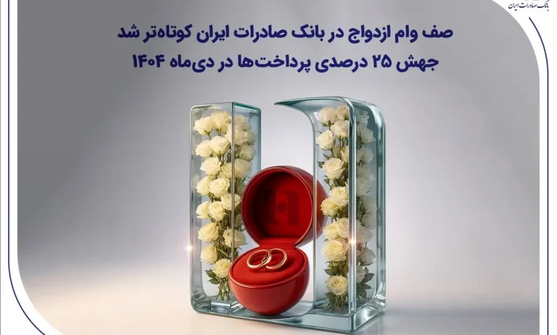 پرداخت وام قرضالحسنه ازدواج در دیماه سال ۱۴۰۴ نسبت به ماه قبل از آن، رشد ۲۵ درصدی را ثبت کرده است. این افزایش نقش مؤثری در کوتاهتر شدن صف دریافت این تسهیلات ایفا کرده است. بر اساس گزارش روابط عمومی بانک صادرات ایران، این روند با هدف پاسخگویی سریعتر به متقاضیان و افزایش دسترسی زوجهای جوان در سراسر کشور ادامه خواهد داشت.