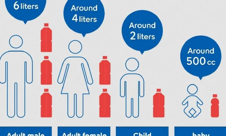 بر اساس یک فرمول کلی، خون حدود ۷ تا ۸ درصد وزن کل بدن یک فرد بالغ را تشکیل میدهد. برای مثال، یک مرد بالغ با وزن ۷۰ کیلوگرم، حدود ۵ تا ۵.۶ لیتر خون در گردش دارد. این مقدار برای تأمین نیاز اندامها و حفظ فشار خون در محدوده طبیعی ضروری است. جالب است بدانید نوزادان در هنگام تولد تنها حدود ۲۵۰ میلیلیتر خون در بدن دارند.
