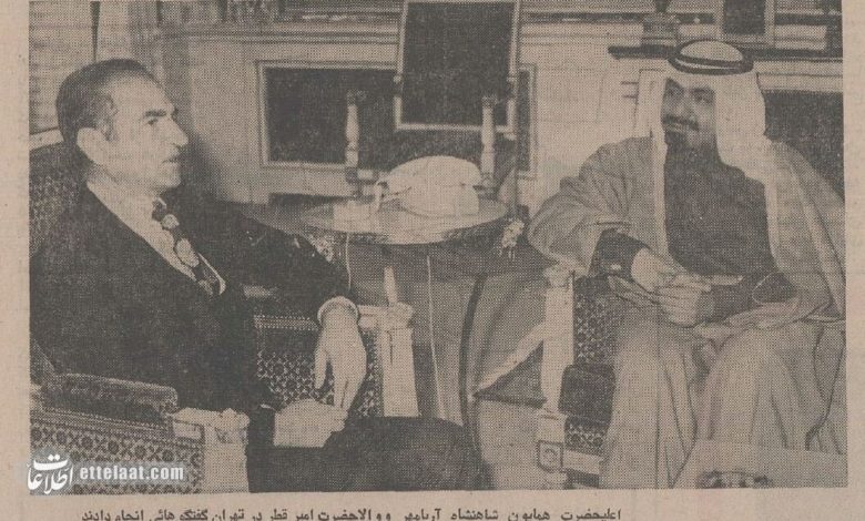 در آبان سال ۱۳۵۴، امیر وقت قطر به همراه هیاتی تجاری و سیاسی وارد تهران شد. روزنامه اطلاعات در سوم اسفند همان سال، گزارشی از نتایج این سفر و دیدار با محمدرضا پهلوی منتشر کرد. این گزارش حاوی فهرستی از کالاهایی است که ایران در آن زمان به قطر صادر می‌کرد.