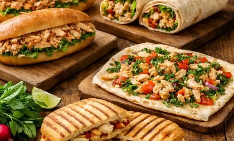 **۵. ساندویچ مرغ گریلشده** مرغ گریلشده به همراه تکههای بادمجان کبابی و سبزیجات داخل نان سرو میشود. این ترکیب بافتی سبک و دلچسب ایجاد میکند.